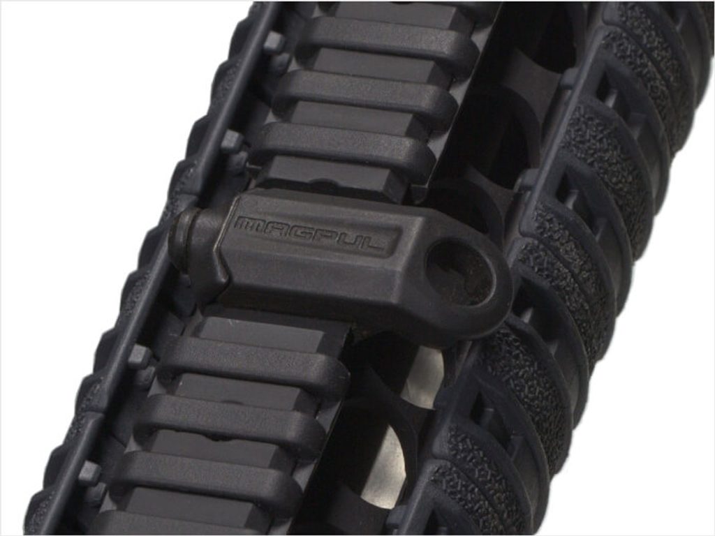 Magpul ocelový adaptér na Picatinny/Weaver lištu 22 mm pro upnutí QD poutka popruhu.