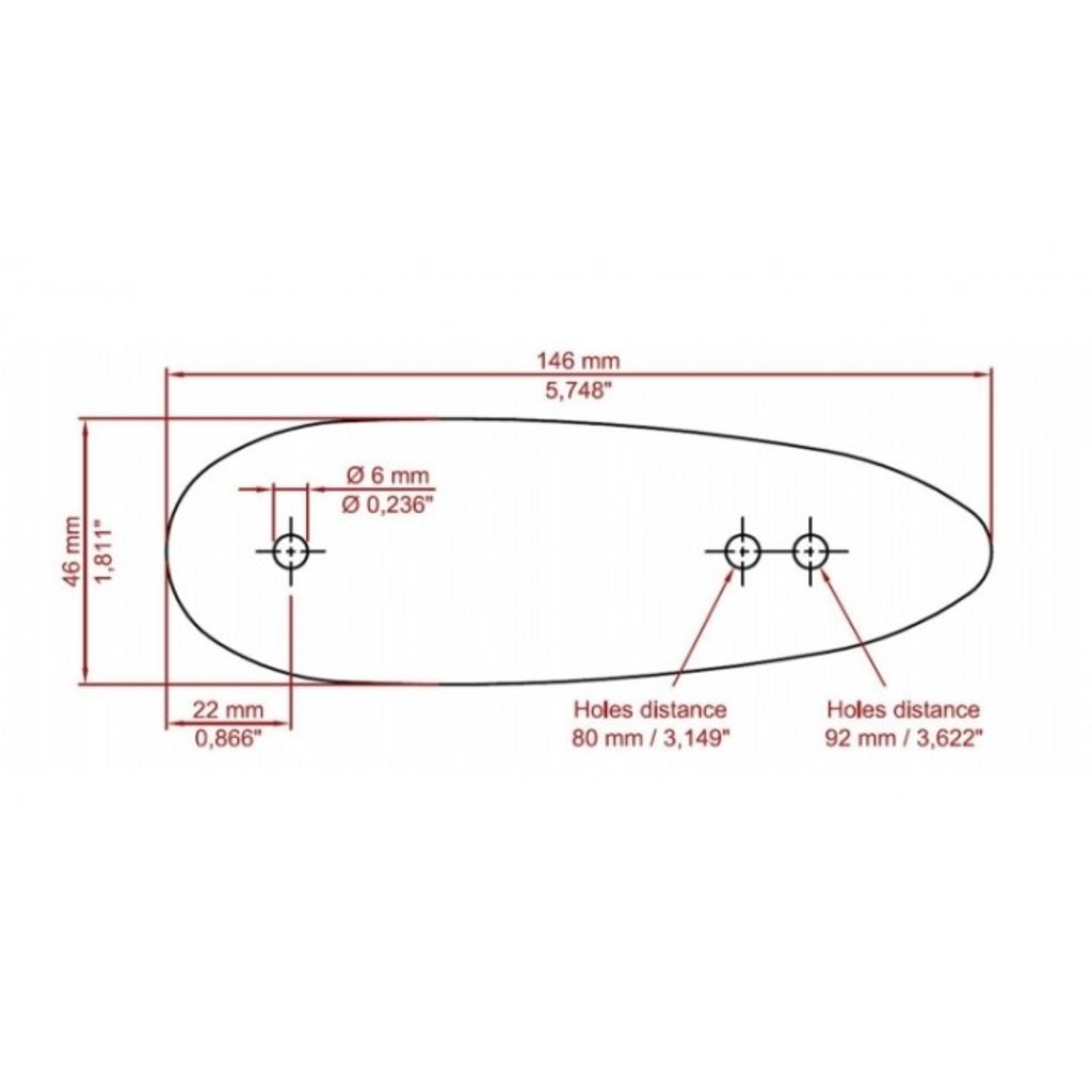 Cervellati botka Microcell Trap střední má černou barvu je vysoká 25 mm, rozteč mezi šrouby je 92 mm, délka 146 mm, šířka 45 mm a váha je 82g.