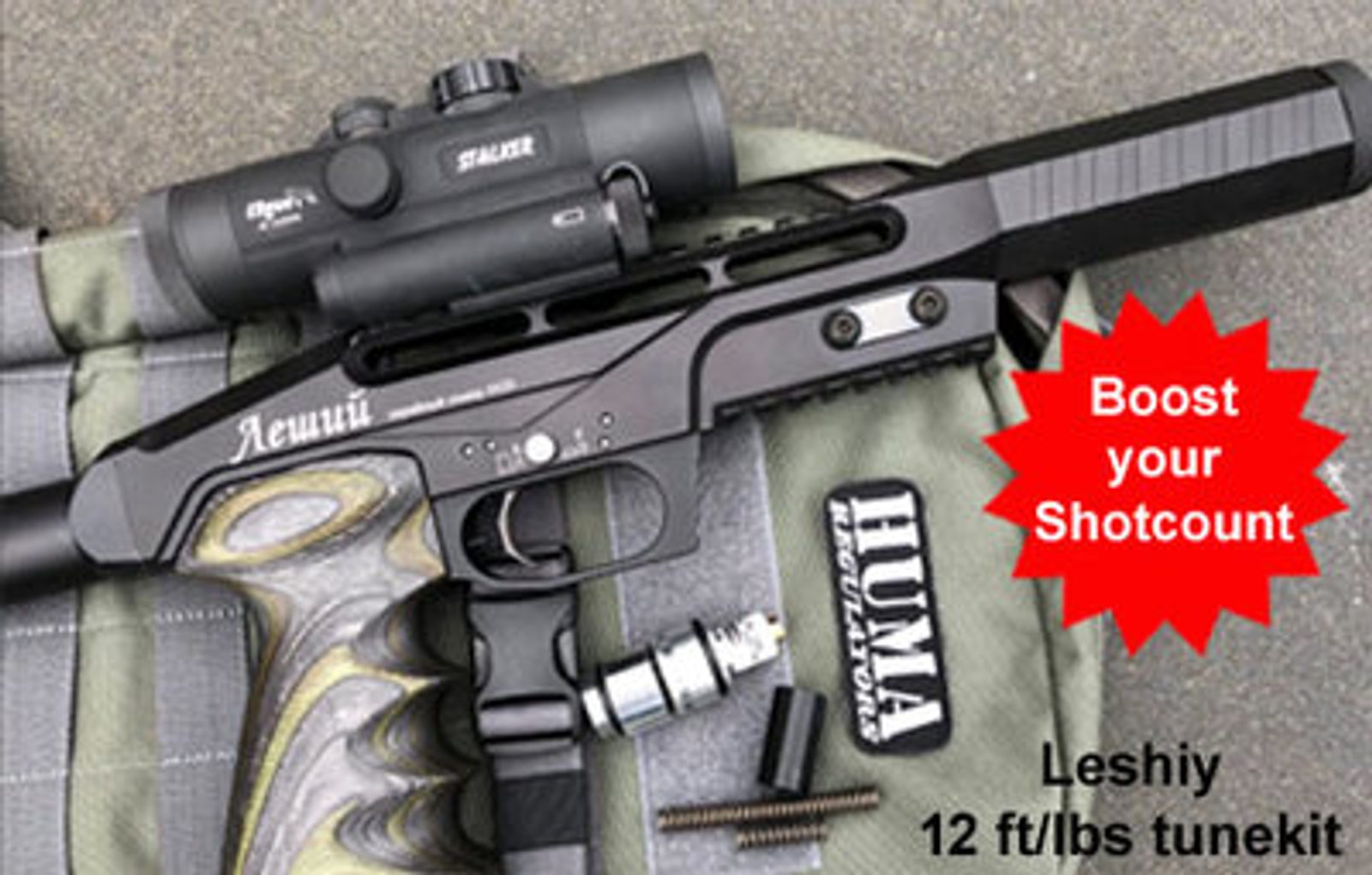 HFT Tuningový regulátor tlaku Huma pro Edgun Leshiy 12ft/lbs (nastaven pro 16J). Regulátor byl vyroben v úzké spolupráci s Airborne Arms NZ na zvláštní požadavek střelců HFT v Anglii. Sada je speciálně navržena pro ráži 4,5 mm ).177), ale funguje spolehlivě i s ráží 5,5 mm (.22).
