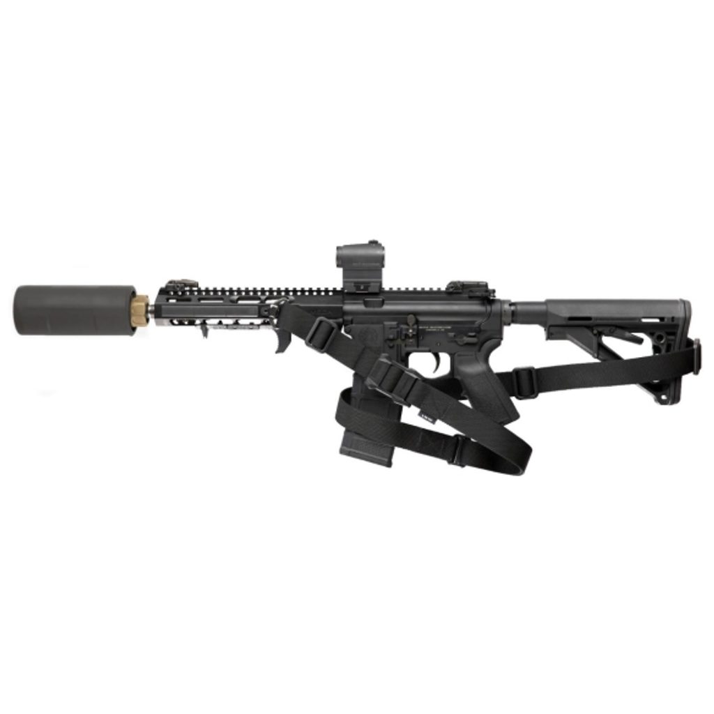 Optimalizováno pro kruhové tlumiče s vnějším průměrem 1,5”/3,81 cm s délkou těla přibližně 5,5”/13,97 cm (bez upevňovacího hardwaru / rozhraní), jako je například Surefire SOCOM556-RC2.