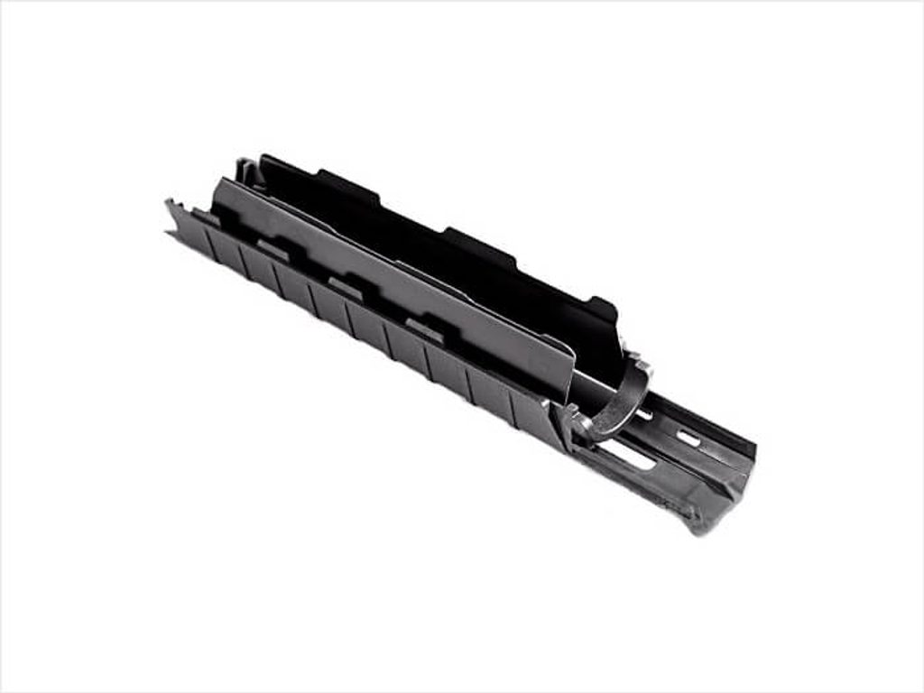 Zesílená, žáruvzdorná polymerová konstrukce poskytuje provozní odolnost bez vysoké hmotnosti. Velké přední prodloužení na spodním okraji chrání uživatele před náhodným dotykem ruky na horkou hlaveň.