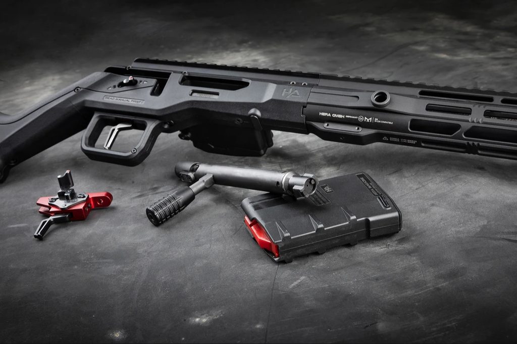 Součástí dodávky je rozpěrka pro nastavení délky pažby pro personalizací pažby. Navíc má Hera H6 polymerovou opěrku tváře a 10 ranný zásobník kompatibilní se zásobníky typu AR-15.