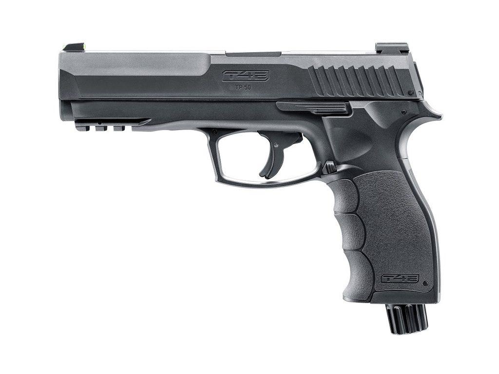 Špičková zbraň pro domácí obranu: T4E TP 50 je pistole s výhodami velkého kalibru .50 (průměr cca 12,7 mm). Zásobník pojme šest projektilů, které jsou vystřeleny energií až 11 joule. Zdroj energie zajišťuje CO2 bombička umístěná v rukojeti. Díky pokročilé funkci Quick-Piercing je bombička aktivována ne hned po jejím vložení, ale až lehkým úderem na spodní část rukojeti, díky čemuž je zbraň vždy připravená a rychle použitelná. Optický a hmatový indikátor tlaku. Picatinny lišta se šířkou 22 mm pro instalaci laserového zaměřovače nebo svítilny. Masivní provedení vyděsí každého útočníka. Texturovaný povrch rukojeti zajistí bezpečný úchop i v stresových situacích a při pádu dokáže náhodnému výstřelu zabránit spoušťová pojistka. (pozn.: model TP 50 je totožný s modelem HDP 50) Nabitím projektilů s obsahem barevné látky je použitelná na tréninkovou střelbu nebo jako paintballová zbraň. Nabitím gumových projektilů nebo projektilů s obsahem slzné náplně, je zbraň použitelná jako účinný obranný prostředek.