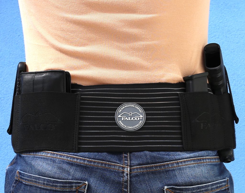 Elastický pás Falco - zbraň je v elastickém pásu velmi stabilní, přiléhá k tělu a pod oblečením není viditelná. Pás je vyroben z kombinace plného a prodyšného materiálu. Pás B102 nabízí ideální kompromis mezi pevností materiálu a komfortem nošení. Pás obsahuje pouzdro na zbraň , 2 zásobníky a doklady.