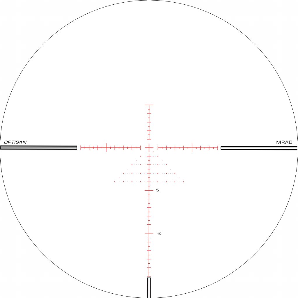 Díky novému mechanickému systému je klikání přesnější, byla zvýšena mechanická odolnost vůči zpětnému rázu a byla výrazně eliminována chyba paralaxy. Záměrná osnova je jak je u Optisanu zvykem leptaná v čočce a je umístěná ve druhé ohniskové rovině. Osnova je podsvícená červeně s možností regulace v 6ti krocích.