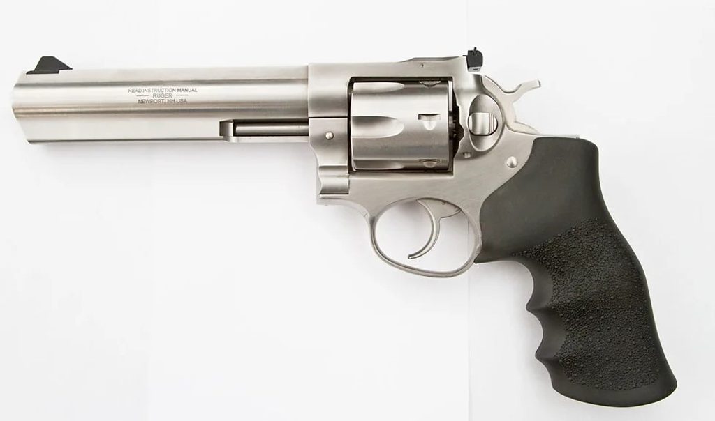 Revolver Ruger GP/KGP 161. Kvalitní ocelové provedení těla s pohodlnou kombinací polstrování a dřeva umožnuje střelbu po delší dobu bez ztráty pohodlí. Válec má kapacitu na sedm nábojů. Revolver pojme náboje ráže .375 Mag i .38 Special.