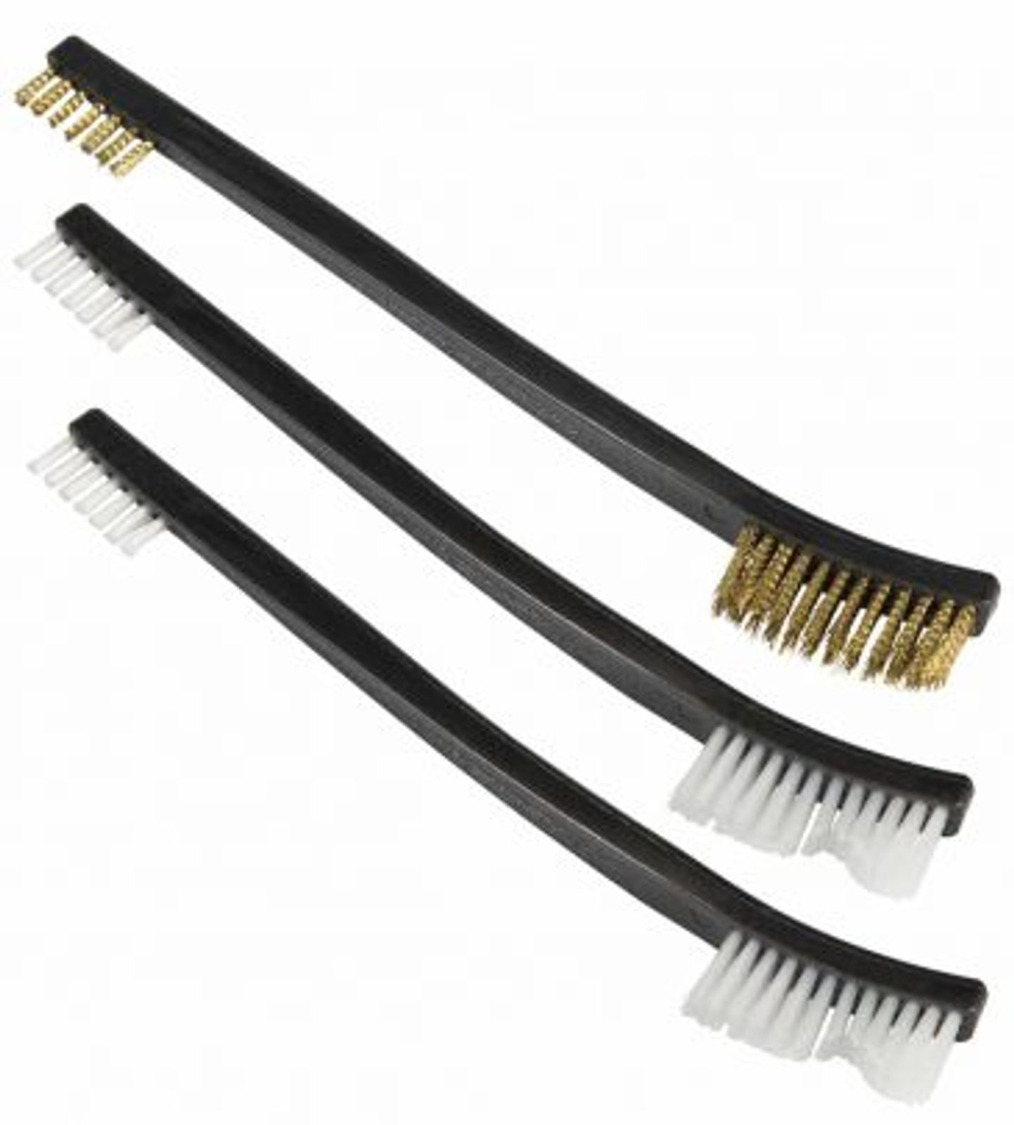 Sada kartáčků Tipton pro čištění zbraní tři kartáčky. Jeden bronzový a dva nylonové. Jedna strana kartáčku obsahuje malé štětiny pro čištění úzkých prostorů. Druhá strana je určena k čištění velkých předmětů.