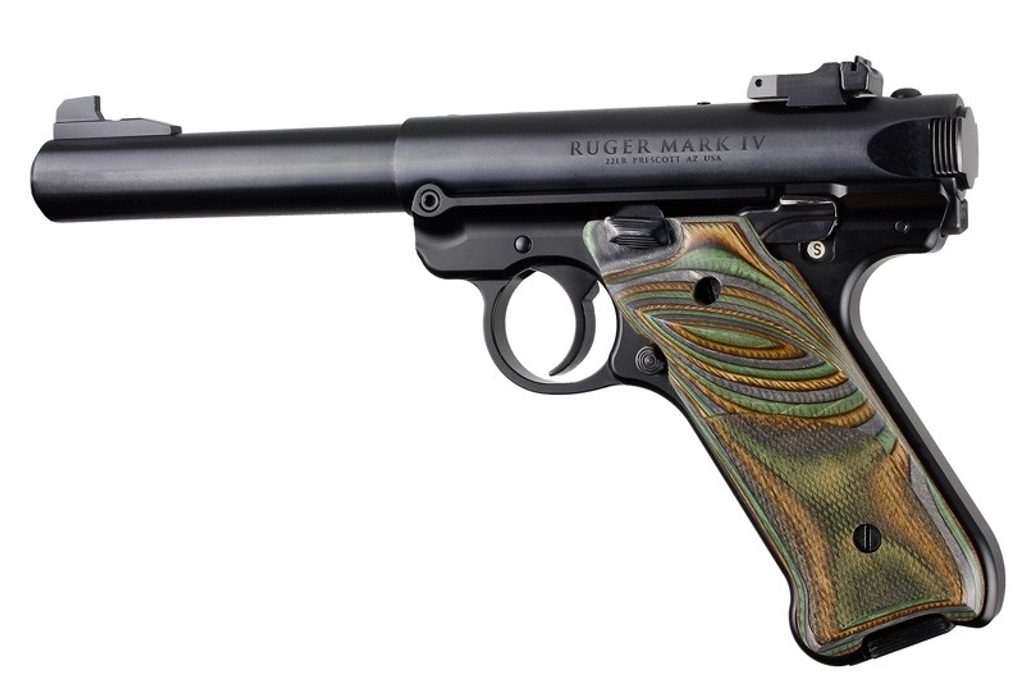 Střenky Hogue pro pistole Ruger MK IV, Lamo Camo, zdrsněné s vybráním pro palec.