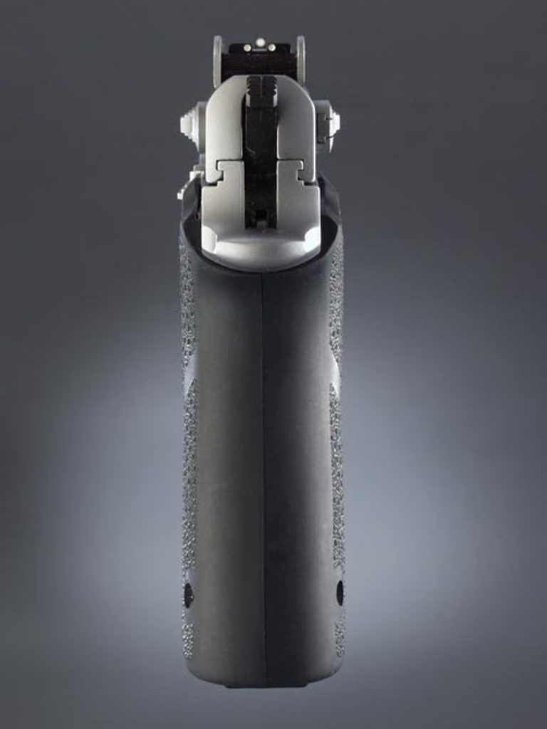 - Hogue tvaruje své syntetické rukojeti tak aby odpovídaly ortopedickému tvaru ruky s vybráním pro prsty a příjemným zdrsněním.