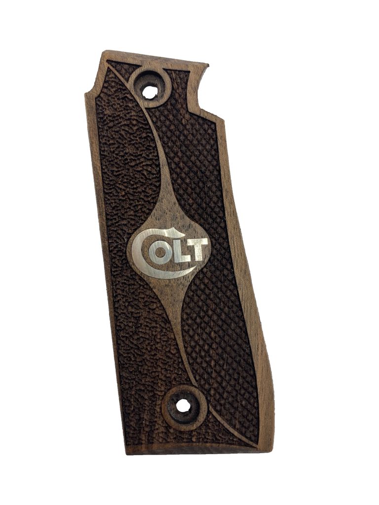 Střenky tureckého výrobce KSD pro pistole Colt Mustang Plus II turecký ořech se stříbrným logem.