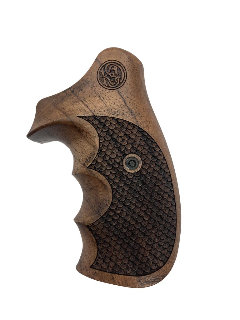 Střenky tureckého výrobce KSD pro revolvery Smith & Wesson K/L rám round butt turecký ořech s logem.