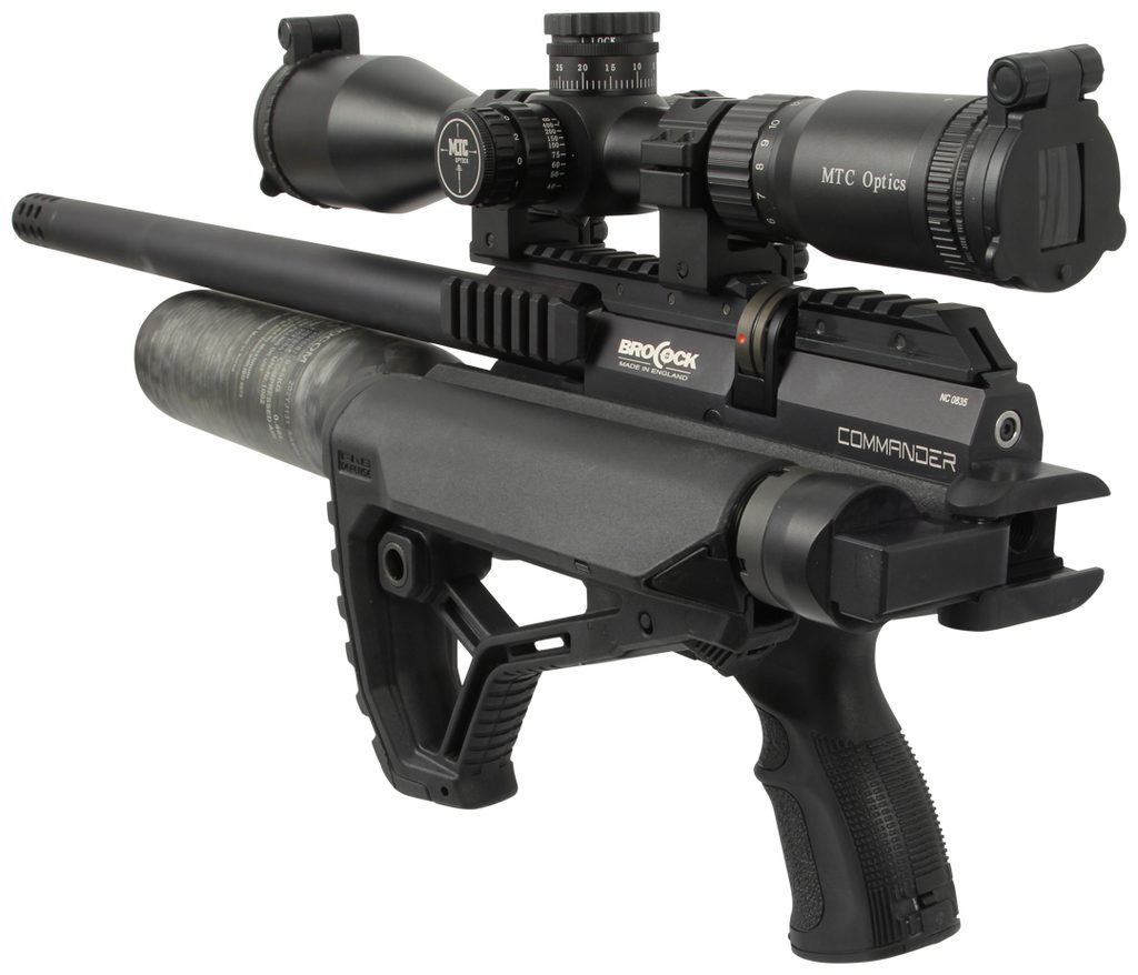 Taktická vzduchovka BRK Commander HiLite XR v černém provedení s kevlarovou kartuší a sklopnou pažbou s pistolovým úchopem těží také ze vzájemné spolupráce (Daystate a BRK). BRK Commander HiLite XR Brocock má vylepšený patentovaný systém „Slingshot Hammer“, který zajišťuje lepší dávkování vzduchu a nižší spotřebu. Tento systém spolu s regulátorem tlaku nizozemského výrobce Huma a vylepšuje konzistenci střel vzduchovka je daleko přesnější jako konkurence.