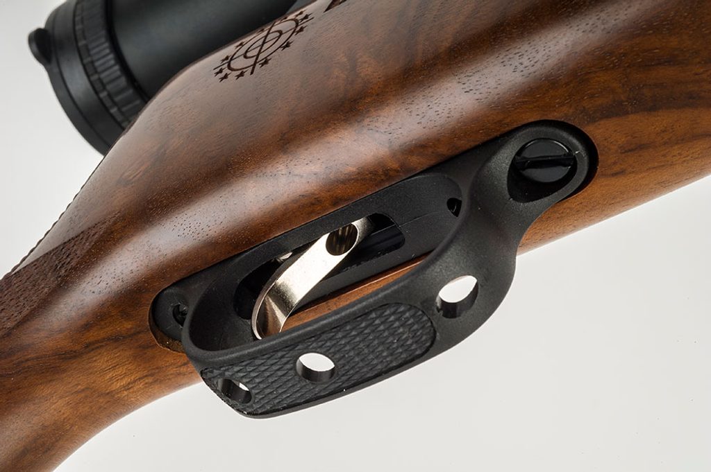 Ořechová pažba typu Monte Carlo od italského výrobce Minelli, která už původního modelu byla dokonalá, byla ještě upravena a odlehčena Pažba je v provedení pro praváka. Plnění kartuše je pomocí Quickfill konektoru, který je součástí balení.