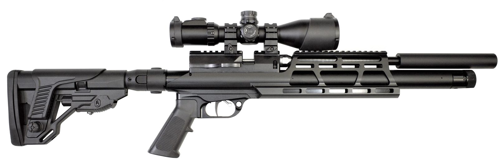 PCP vzduchovka Jæger/Lovec Mini Carbine 5,5mm s regulátorem a zásobníkem na 10 ran. Volně plovoucí hlaveň Lothar Walther o délce 312mm. Montážní lišta weaver pro montáž puškohledu. Plně nastavitelná spoušť. Hliníkový rám a předpažbí, plastová pistolová rukojeť a pažba. Pažba je sklopná a plně nastavitelná. Předpažbí používá systém M-LOK. Kartuše s manometrem v přední části má objem 120cm3 se plní pomocí Quickfillu tlakem až do 300BAR. Manuální pojistka, celková délka 830cm, hmotnost zbraně 3,4kg. Vzduchovka nemá klasická mířidla.
